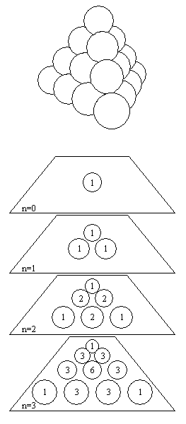 The result is Pascal's pyramid and the numbers at each level n are the coefficients of the trinomial expansion (x + y + z)n.